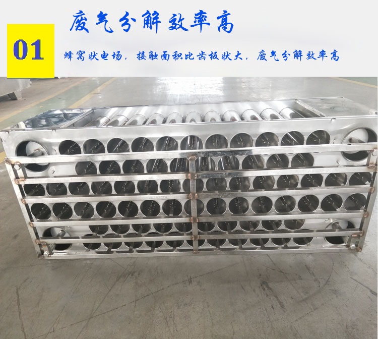 我公司使用圓筒蜂窩電場,把加長多點指針放電技術(shù)成功運用到等離子凈化器里,圓筒蜂窩電場的低溫