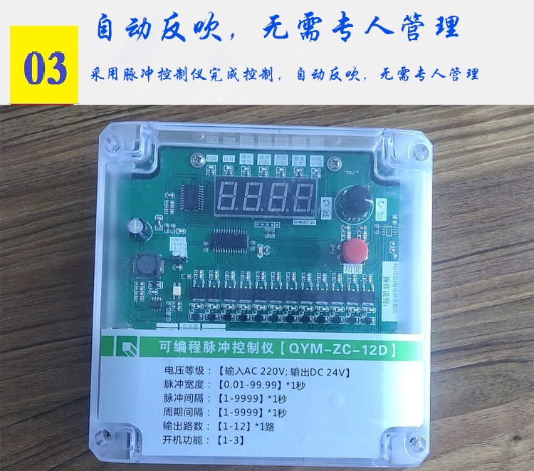 由清灰控制裝置按差壓設(shè)定值或清灰時(shí)間設(shè)定值后,按設(shè)定程序打開電控脈沖閥,進(jìn)行停風(fēng)噴吹,利用壓縮空氣瞬間噴